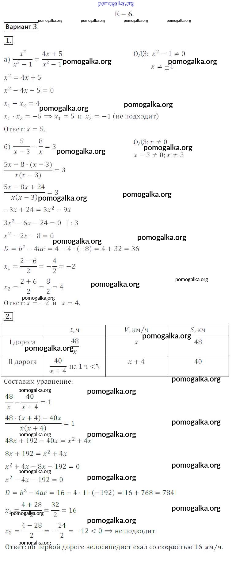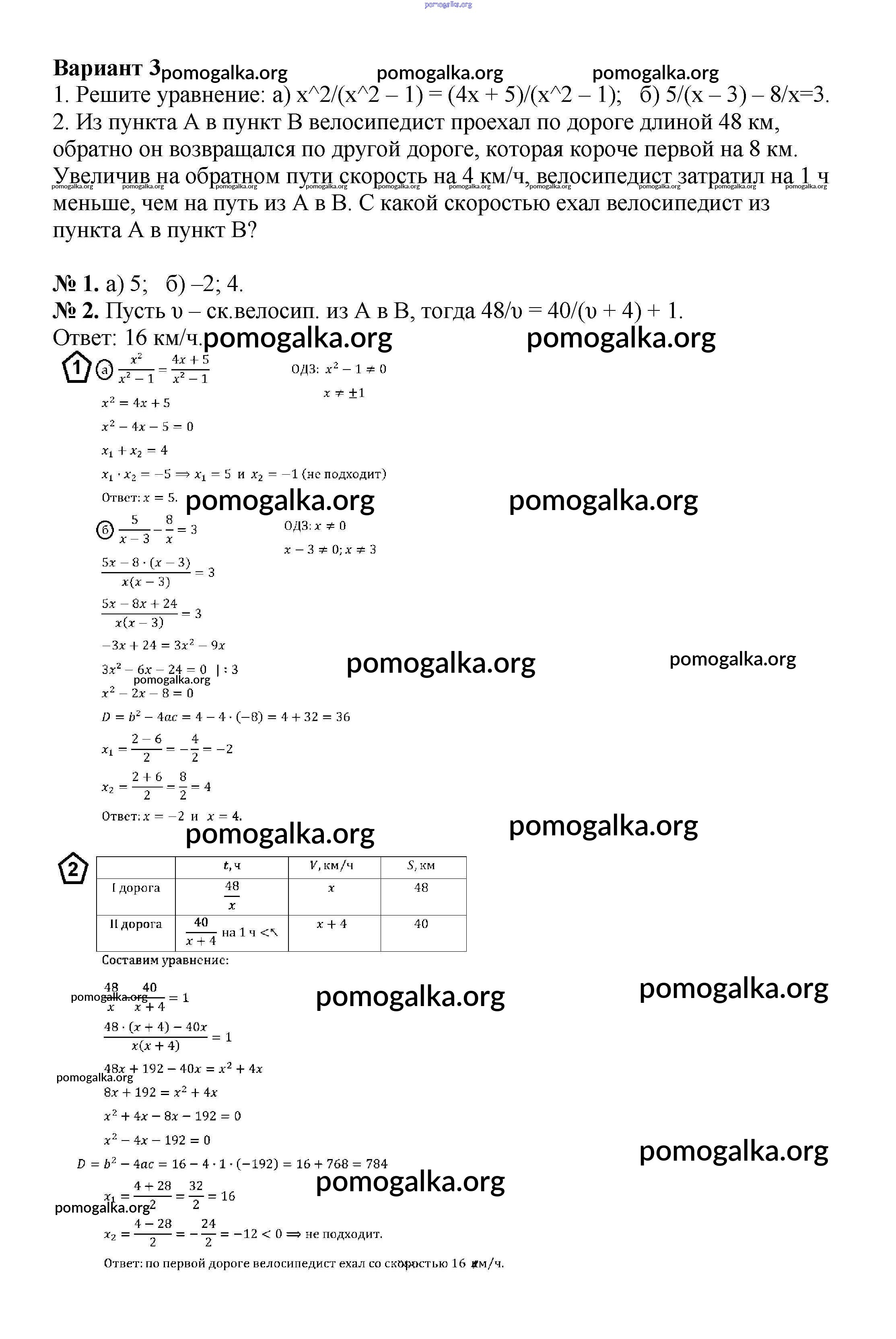 Готовые ответы - Алгебра 8 класс Дидактические материалы Жохов В.И. - кр №6 контрольная работа вариант 3