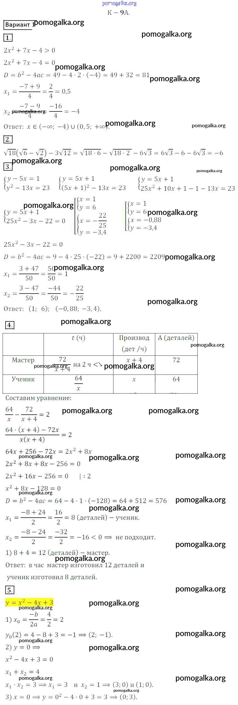 Готовые ответы - Алгебра 8 класс Дидактические материалы Жохов В.И. - кр №9A контрольная работа вариант 1
