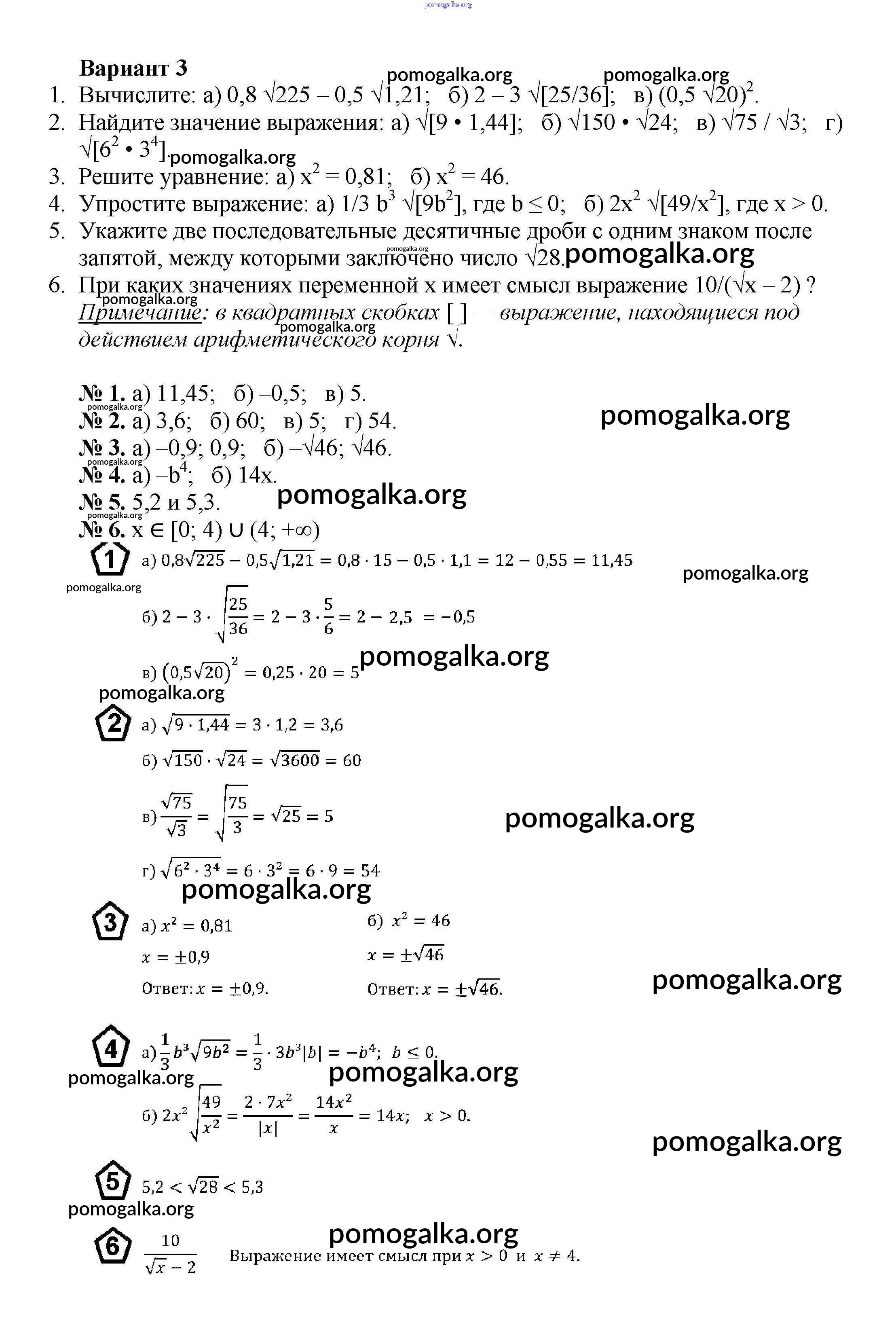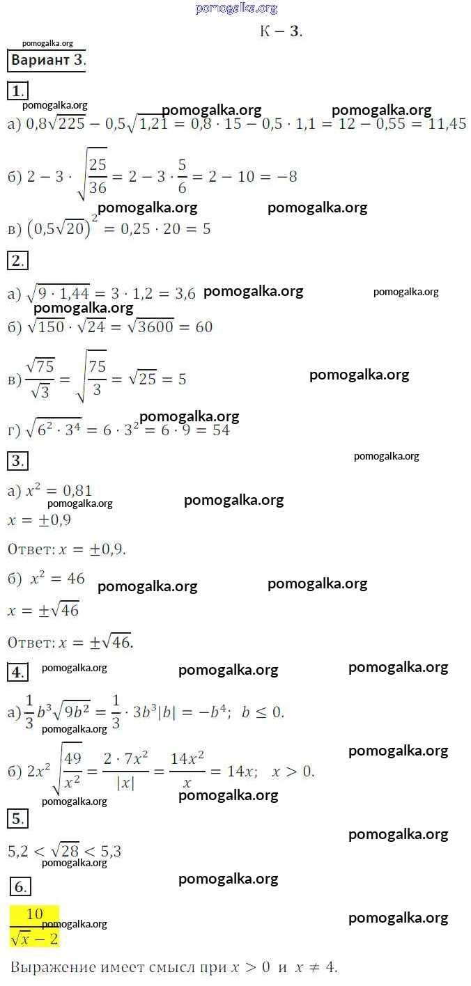 Готовые ответы - Алгебра 8 класс Дидактические материалы Жохов В.И. - кр №3 контрольная работа вариант 3