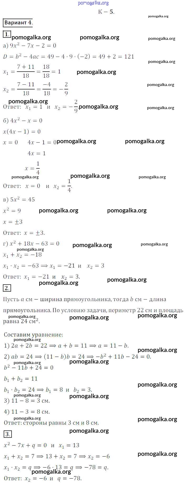 Готовые ответы - Алгебра 8 класс Дидактические материалы Жохов В.И. - кр №5 контрольная работа вариант 4