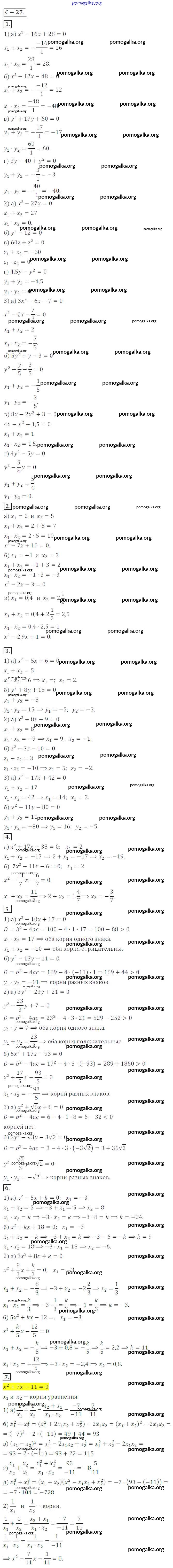 Готовые ответы - Алгебра 8 класс Дидактические материалы Жохов В.И. - вариант 1 самостоятельная работа СР №27