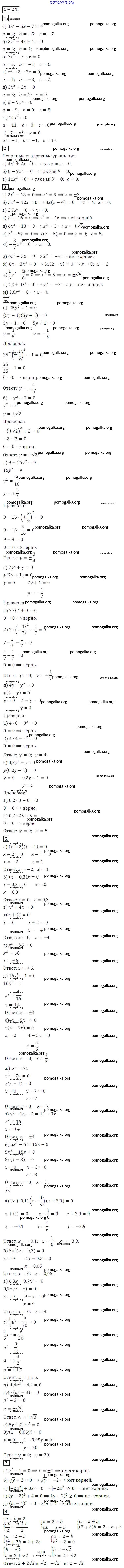 Готовые ответы - Алгебра 8 класс Дидактические материалы Жохов В.И. - вариант 2 самостоятельная работа СР №24