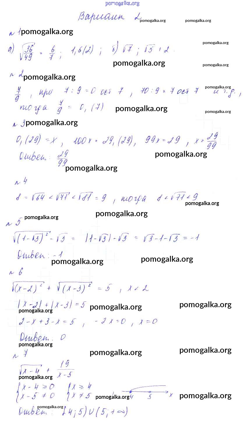 Готовые ответы - Алгебра 8 класс Дидактические материалы Зив Б.Г. - ср №6 самостоятельная работа Вариант-2