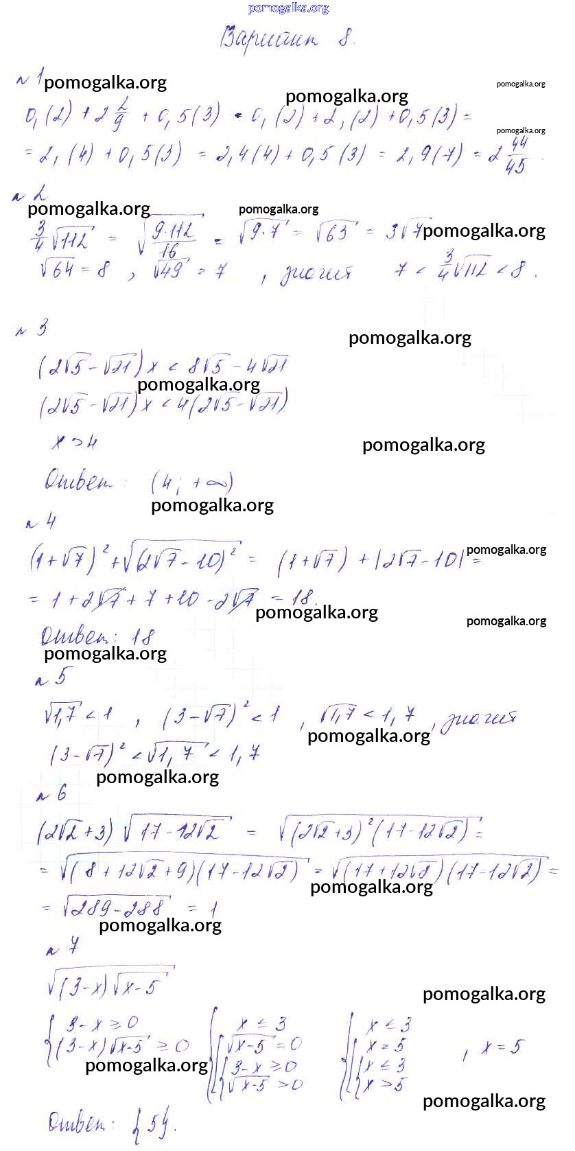 Готовые ответы - Алгебра 8 класс Дидактические материалы Зив Б.Г. - ср №6 самостоятельная работа Вариант-8