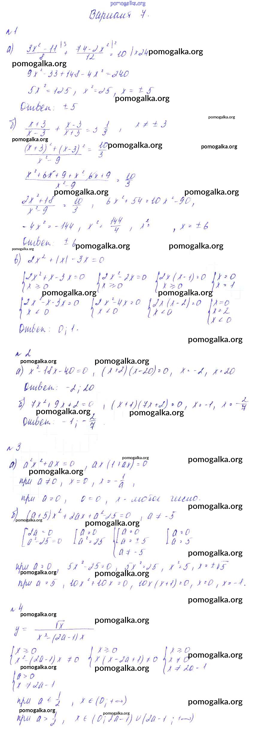 Готовые ответы - Алгебра 8 класс Дидактические материалы Зив Б.Г. - ср №9 самостоятельная работа Вариант-7