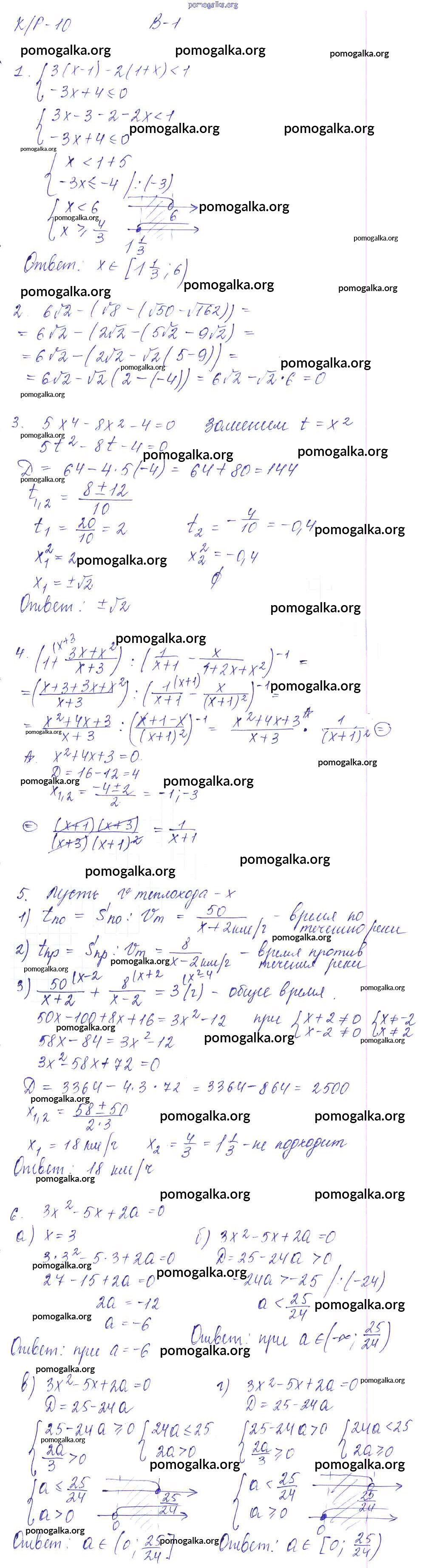 Готовые ответы - Алгебра 8 класс Дидактические материалы Звавич Л.И. (к уч. Макарычева) - кр-10 контрольная работа Вариант 1