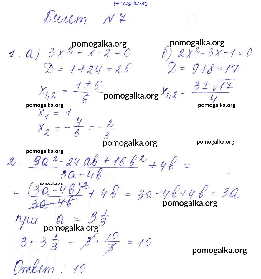 Готовые ответы - Алгебра 8 класс Дидактические материалы Звавич Л.И. (к уч. Макарычева) - билет приложение 7