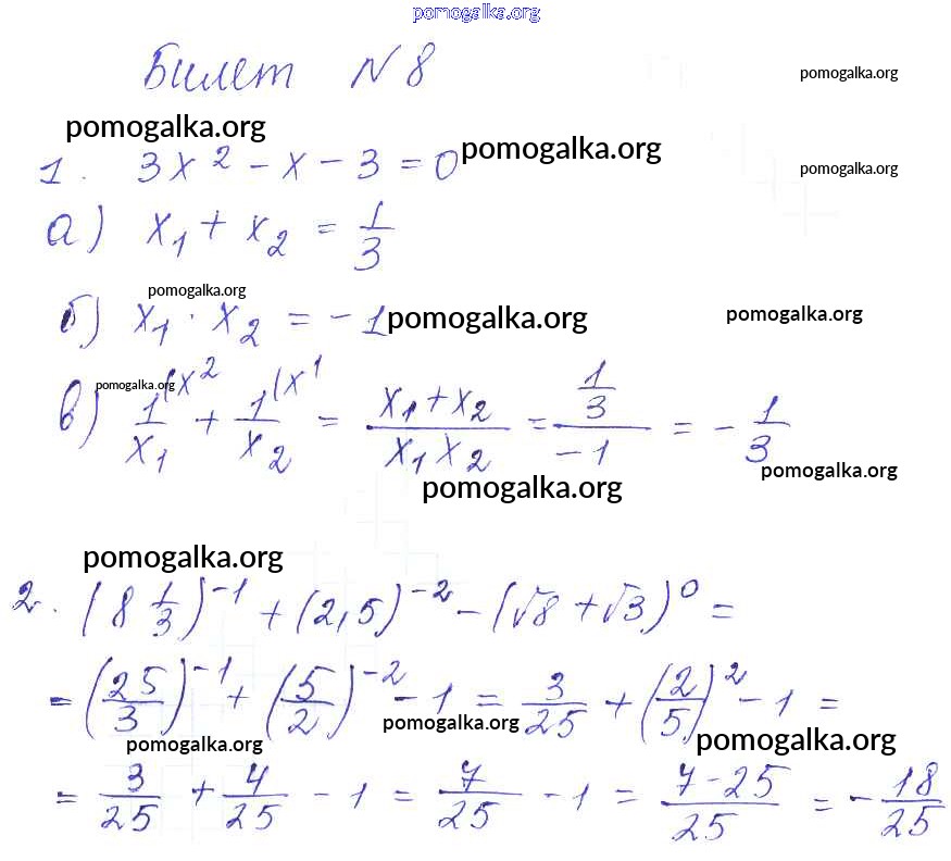 Готовые ответы - Алгебра 8 класс Дидактические материалы Звавич Л.И. (к уч. Макарычева) - билет приложение 8