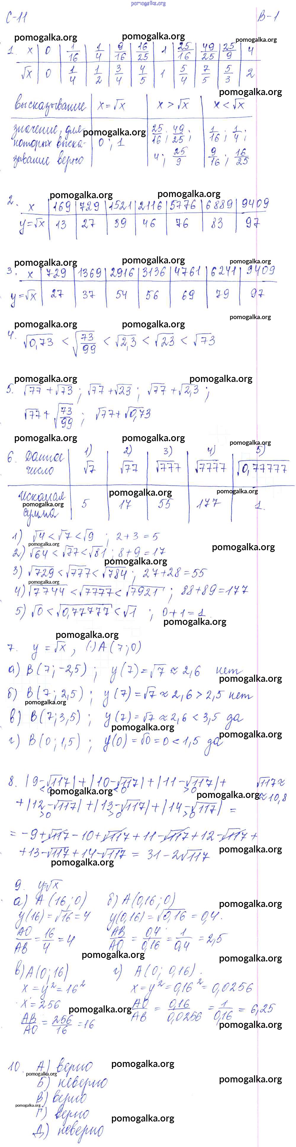 Готовые ответы - Алгебра 8 класс Дидактические материалы Звавич Л.И. (к уч. Макарычева) - ср - 11. вариант самостоятельная работа 1