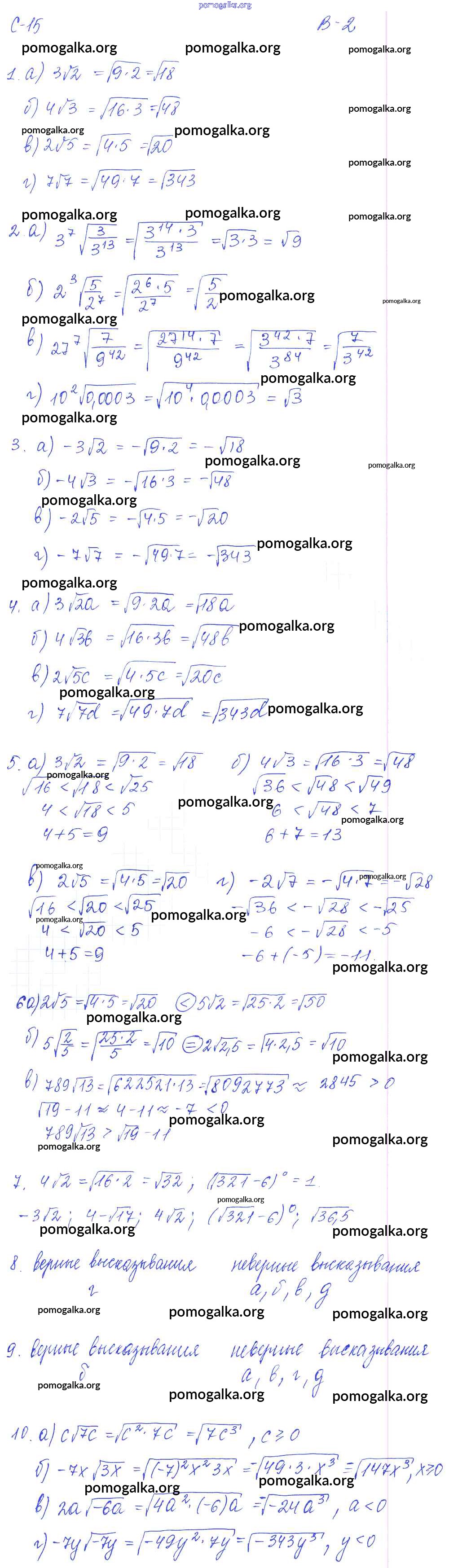 Готовые ответы - Алгебра 8 класс Дидактические материалы Звавич Л.И. (к уч. Макарычева) - ср - 15. вариант самостоятельная работа 2