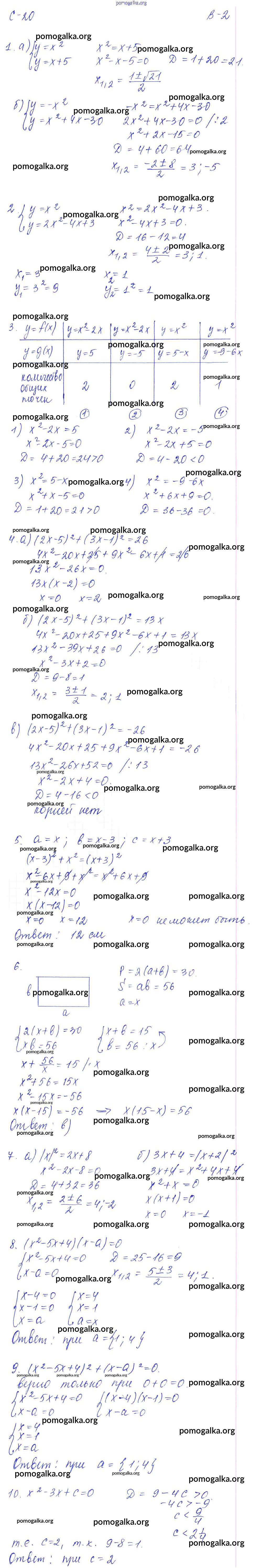Готовые ответы - Алгебра 8 класс Дидактические материалы Звавич Л.И. (к уч. Макарычева) - ср - 20. вариант самостоятельная работа 2
