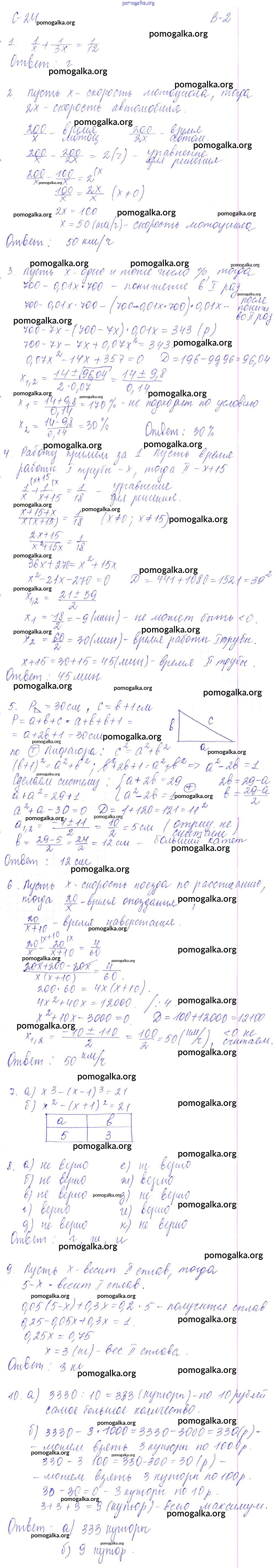 Готовые ответы - Алгебра 8 класс Дидактические материалы Звавич Л.И. (к уч. Макарычева) - ср - 24. вариант самостоятельная работа 2