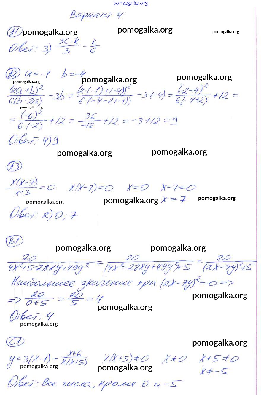 Готовые ответы - Алгебра 8 класс самостоятельные и контрольные работы Глазков Ю.А. (к уч. Макарычева) - ср-1. вариант самостоятельная работа 4