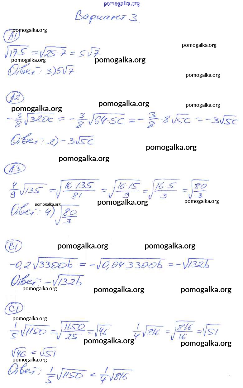 Готовые ответы - Алгебра 8 класс самостоятельные и контрольные работы Глазков Ю.А. (к уч. Макарычева) - ср-14. вариант самостоятельная работа 3