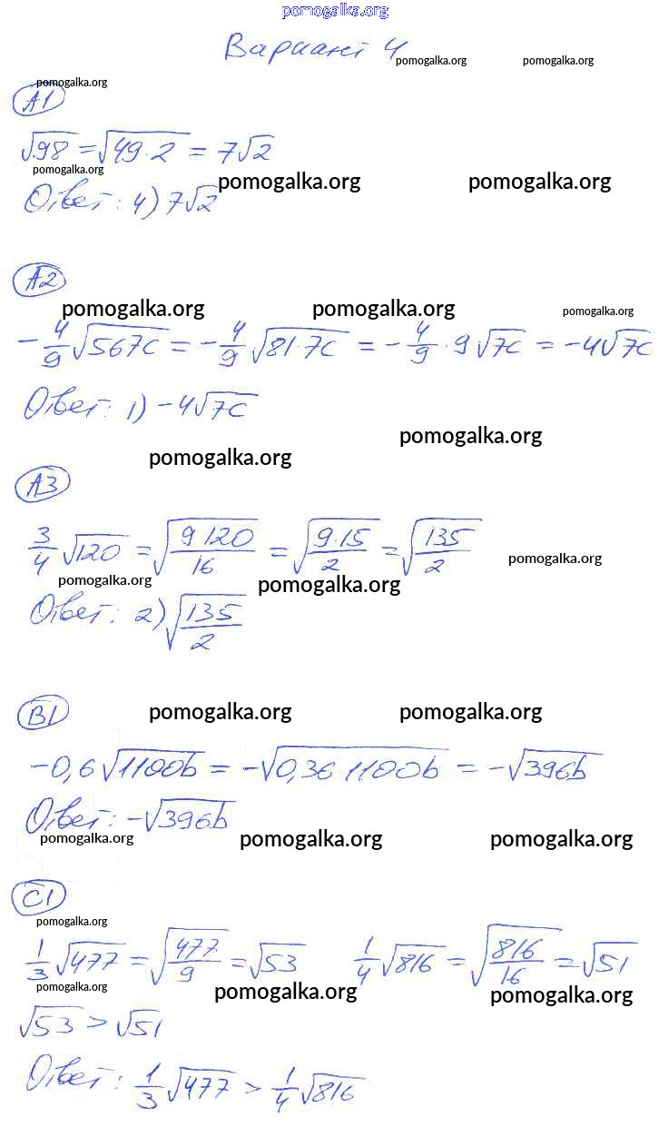 Готовые ответы - Алгебра 8 класс самостоятельные и контрольные работы Глазков Ю.А. (к уч. Макарычева) - ср-14. вариант самостоятельная работа 4