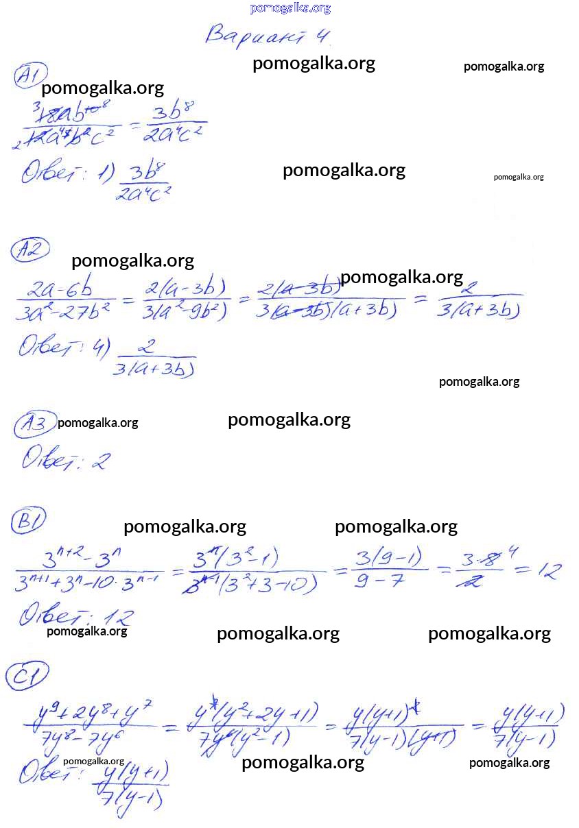 Готовые ответы - Алгебра 8 класс самостоятельные и контрольные работы Глазков Ю.А. (к уч. Макарычева) - ср-2. вариант самостоятельная работа 4