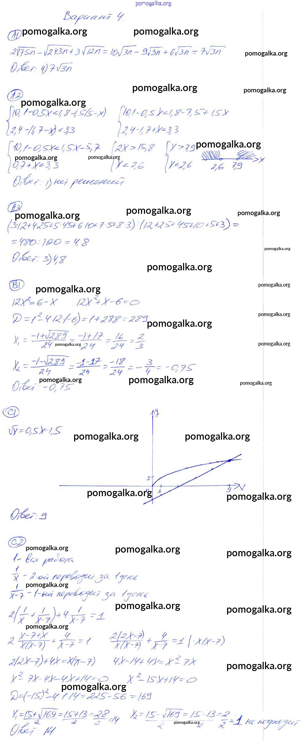 Готовые ответы - Алгебра 8 класс самостоятельные и контрольные работы Глазков Ю.А. (к уч. Макарычева) - ср-28. вариант самостоятельная работа 4