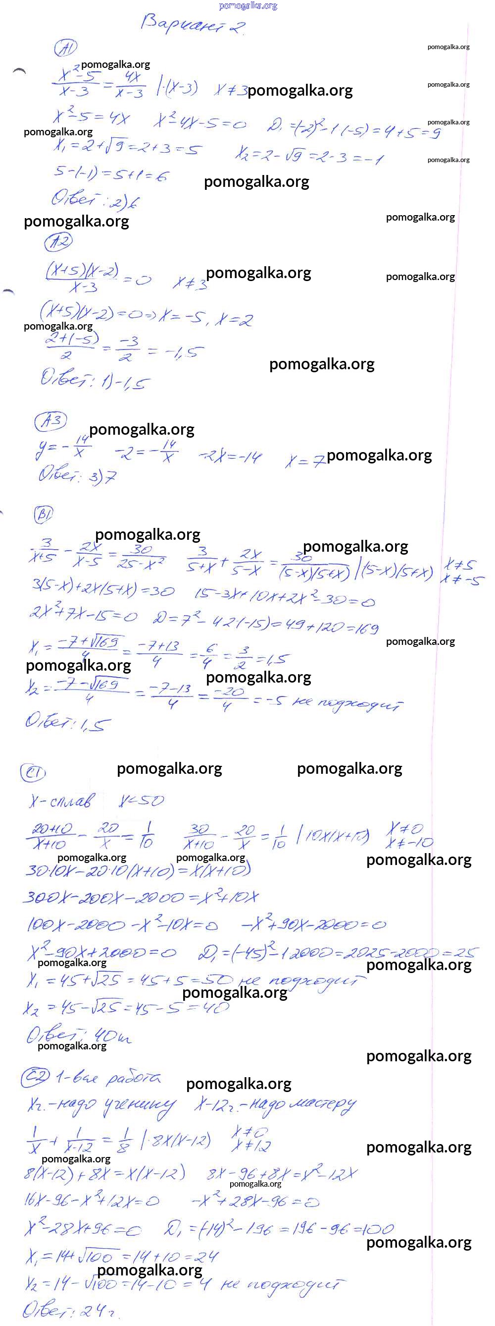 Готовые ответы - Алгебра 8 класс самостоятельные и контрольные работы Глазков Ю.А. (к уч. Макарычева) - кр-6. вариант контрольная работа 2