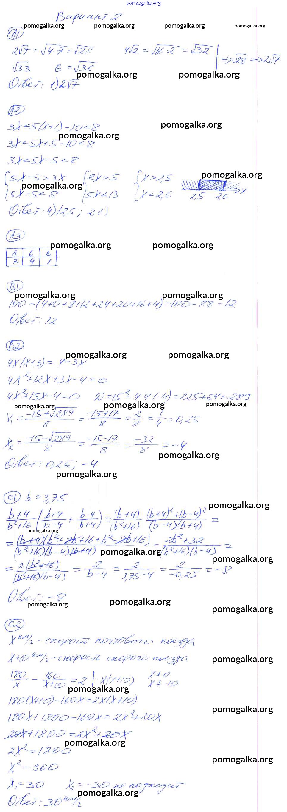Готовые ответы - Алгебра 8 класс самостоятельные и контрольные работы Глазков Ю.А. (к уч. Макарычева) - кр-9. вариант контрольная работа 2