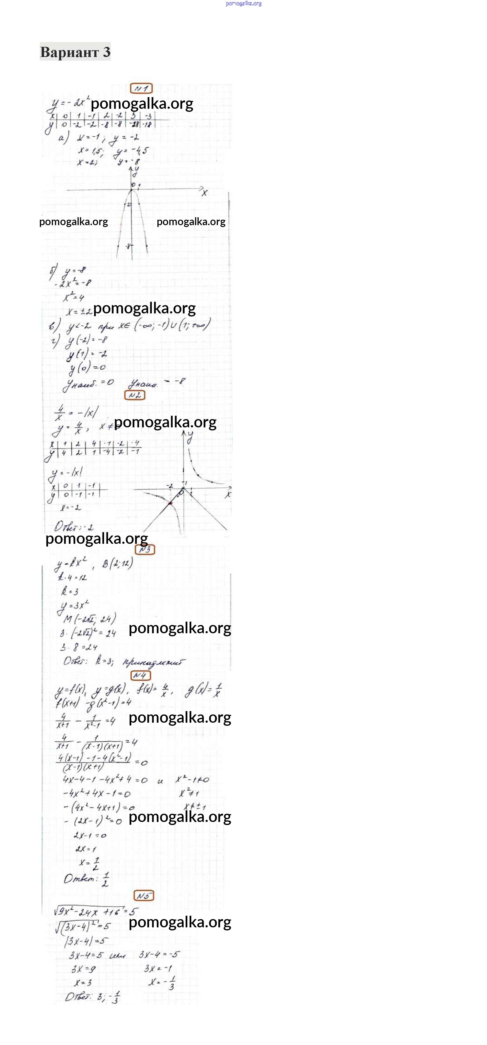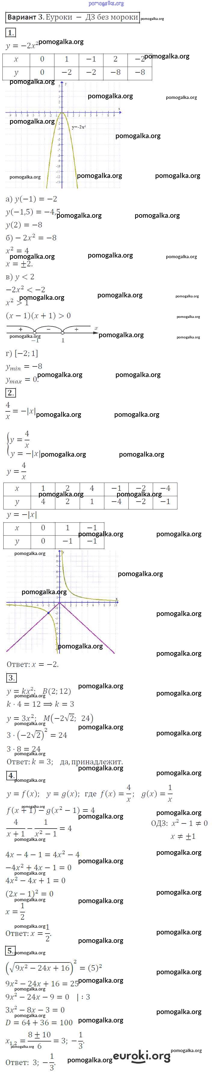 Готовые ответы - Алгебра 8 класс контрольные работы Александрова Л.А. - кр-4. вариант контрольная работа 3