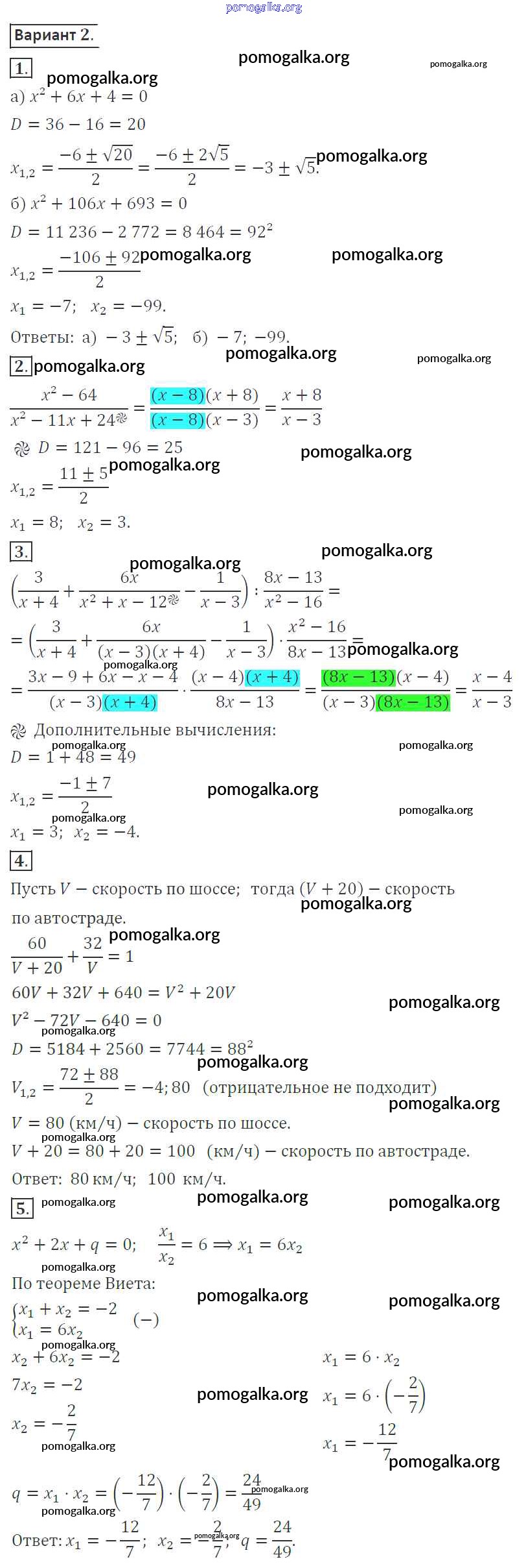 Готовые ответы - Алгебра 8 класс контрольные работы Александрова Л.А. - кр-7. вариант контрольная работа 2
