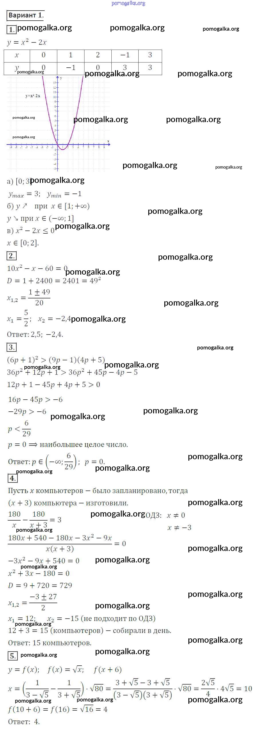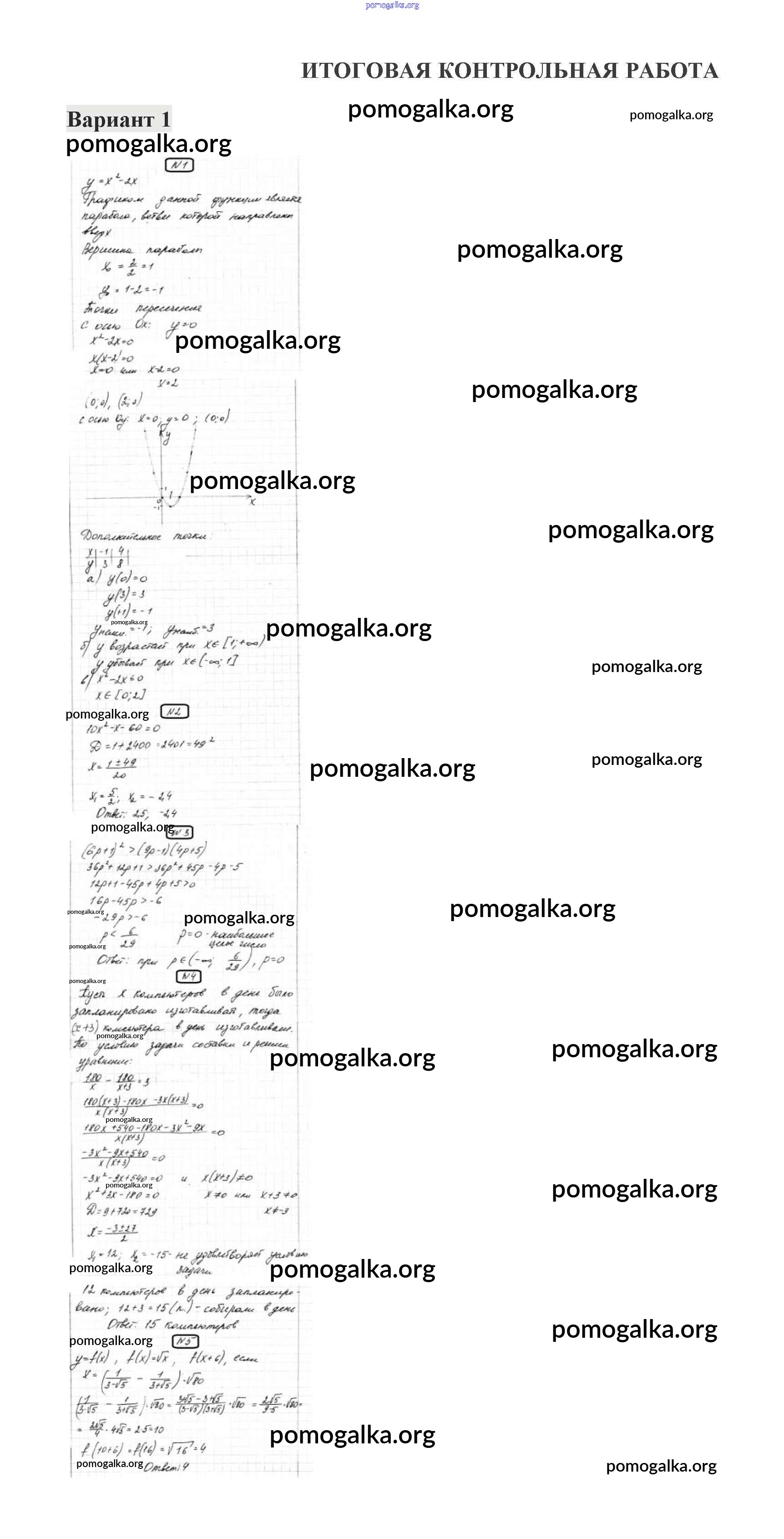 Готовые ответы - Алгебра 8 класс контрольные работы Александрова Л.А. - итоговая контрольная работа. вариант контрольная работа 1