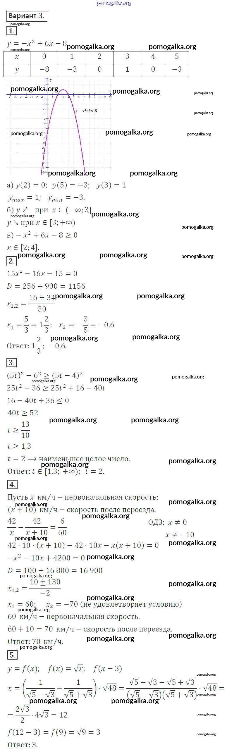 Готовые ответы - Алгебра 8 класс контрольные работы Александрова Л.А. - итоговая контрольная работа. вариант контрольная работа 3