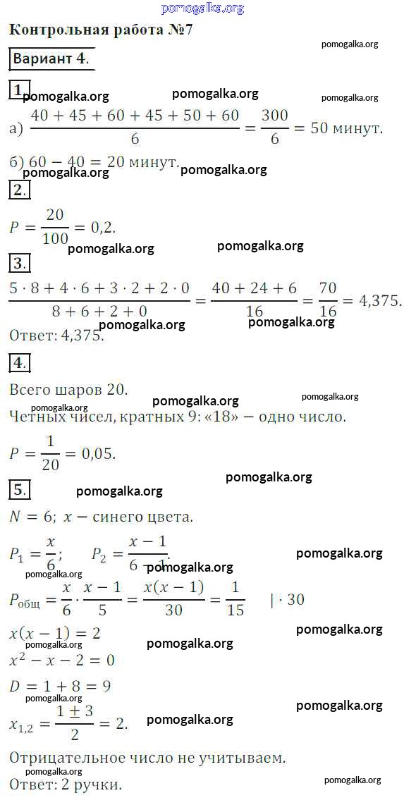 Готовые ответы - Алгебра 8 класс контрольные работы Кузнецова Л.В. - контрольная работа 7. вариант 4