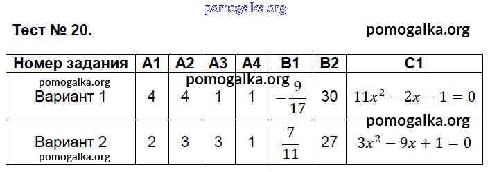 Готовые ответы - Алгебра 8 класс КИМ Черноруцкий В.В. - тест 20