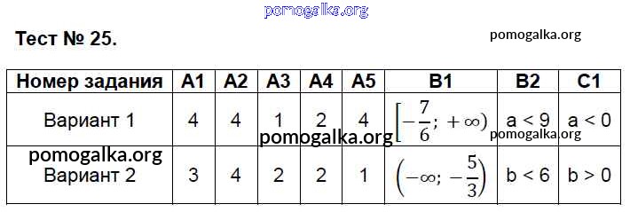 Готовые ответы - Алгебра 8 класс КИМ Черноруцкий В.В. - тест 25