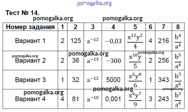 Готовые ответы - Алгебра 8 класс КИМ Глазков Ю.А. - тест 14