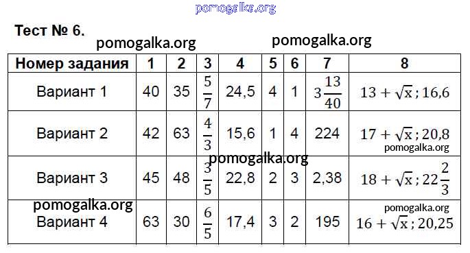 Готовые ответы - Алгебра 8 класс КИМ Глазков Ю.А. - тест 6