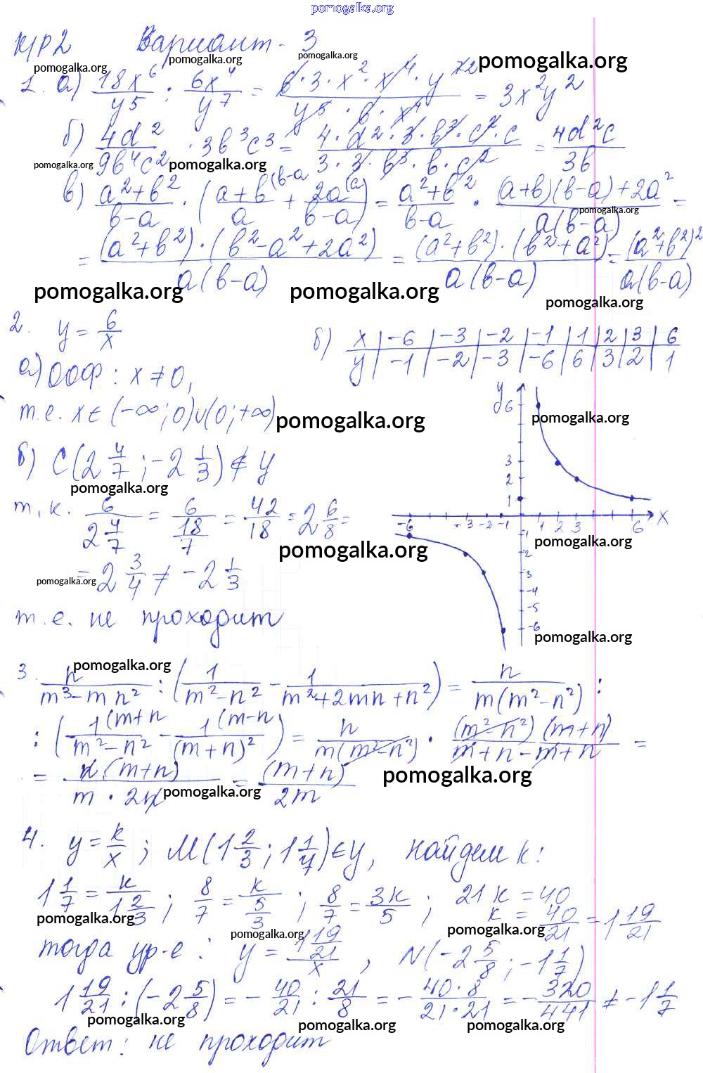 Готовые ответы - Алгебра 8 класс контрольные работы Дудницын Ю.П. - кр-2. вариант 3