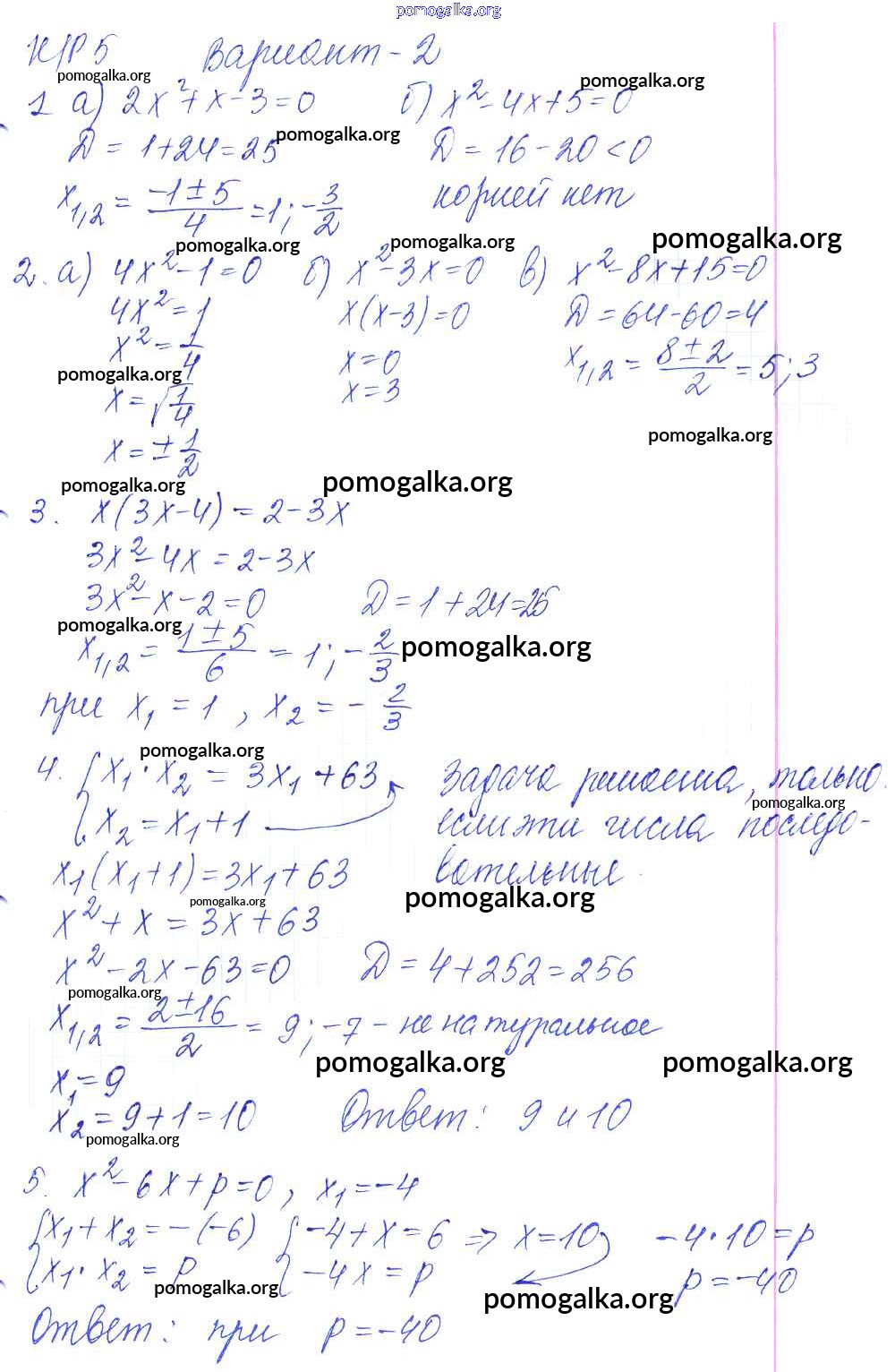 Готовые ответы - Алгебра 8 класс контрольные работы Дудницын Ю.П. - кр-5. вариант 2