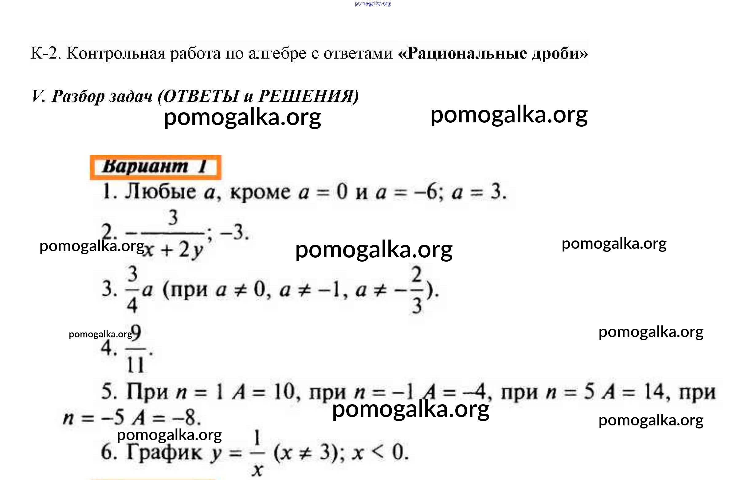 Глава 1. Рациональные дроби (Контрольные работы)