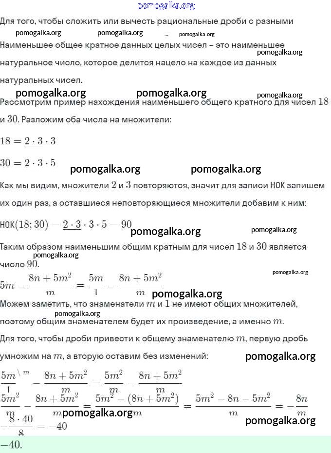 §4. Сложение и вычитание рациональных дробей с разными знаменателями №1-13