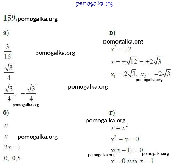 Готовые ответы - Алгебра 8 класс рабочая тетрадь Минаева С.С. - упражнение 159