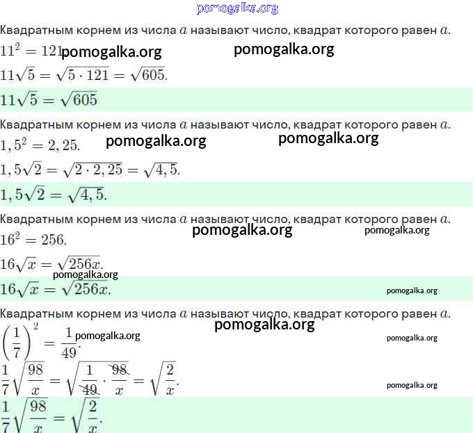 §17. Вынесение множителя за знак корня. Внесение множителя под знак корня. №1-14
