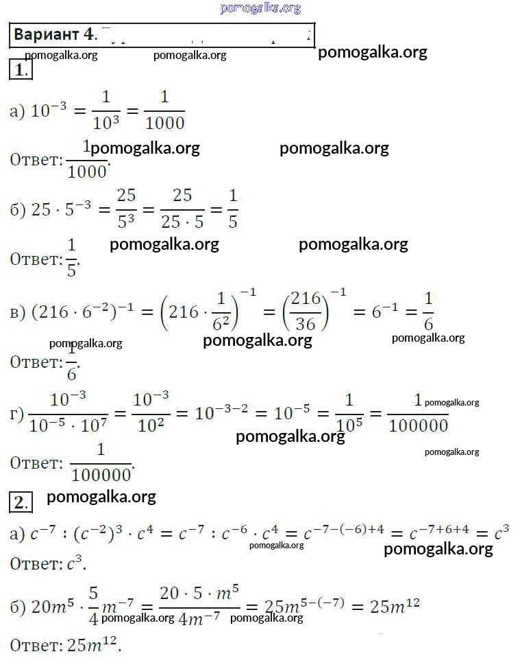 Готовые ответы - Алгебра 8 класс самостоятельные работы Александрова Л.А. - ср-10. вариант 4