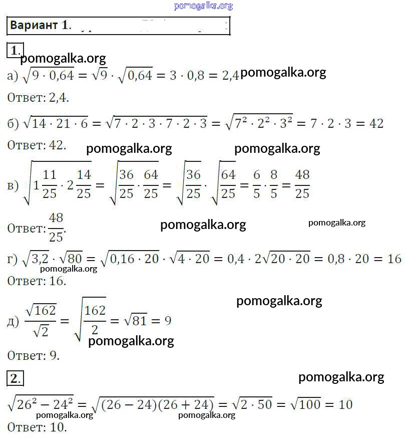 Готовые ответы - Алгебра 8 класс самостоятельные работы Александрова Л.А. - ср-16. вариант 1