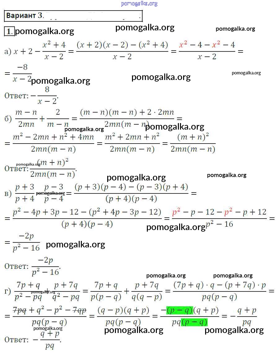 Готовые ответы - Алгебра 8 класс самостоятельные работы Александрова Л.А. - ср-4. вариант 3