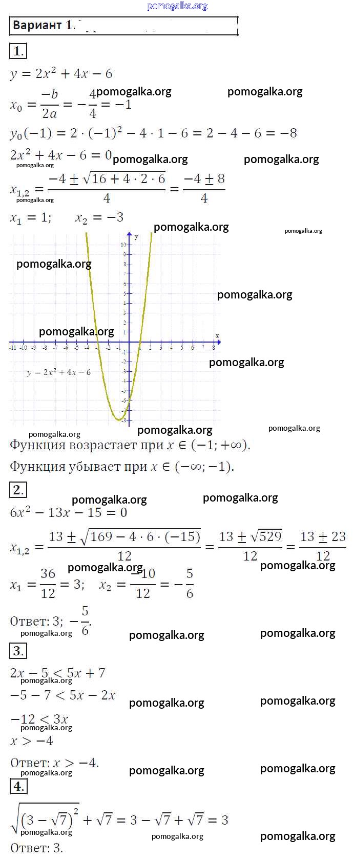 Готовые ответы - Алгебра 8 класс самостоятельные работы Александрова Л.А. - ср-48. вариант 1