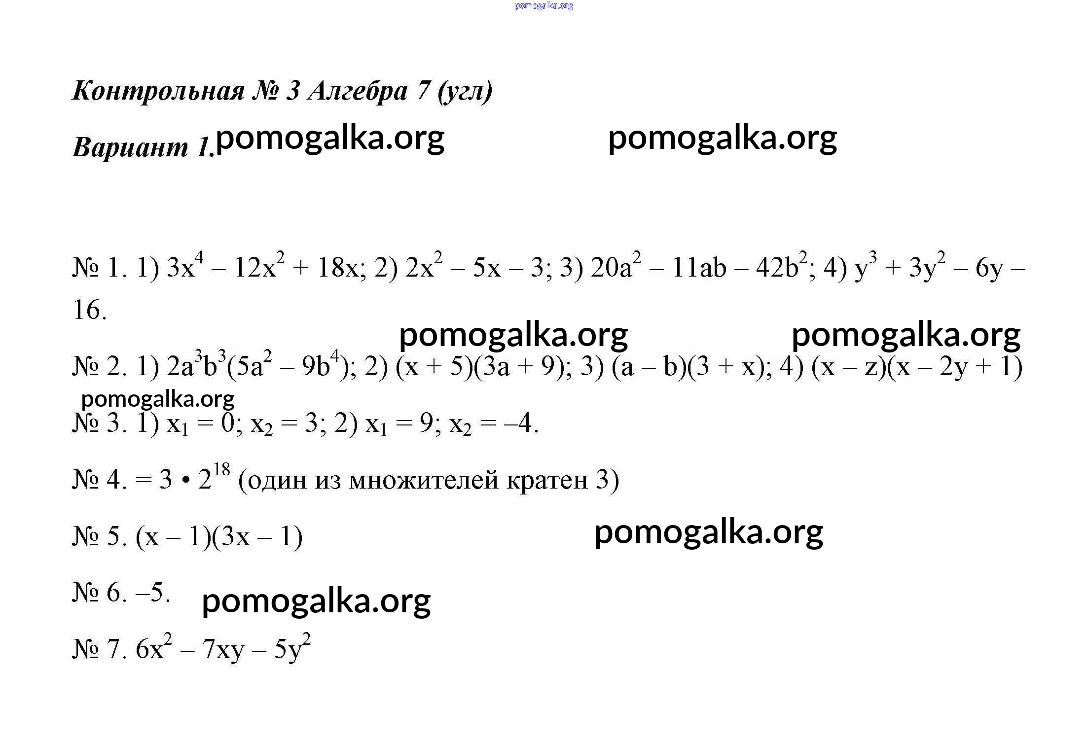 Готовые ответы - Алгебра 8 класс самостоятельные и контрольные работы Мерзляк (Углубленный уровень) - контрольная работа 3. вариант 1