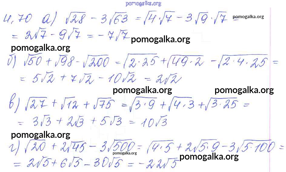 Готовые ответы - Алгебра 8 класс Сборник задач Галицкий М.Л. - §4 4.70