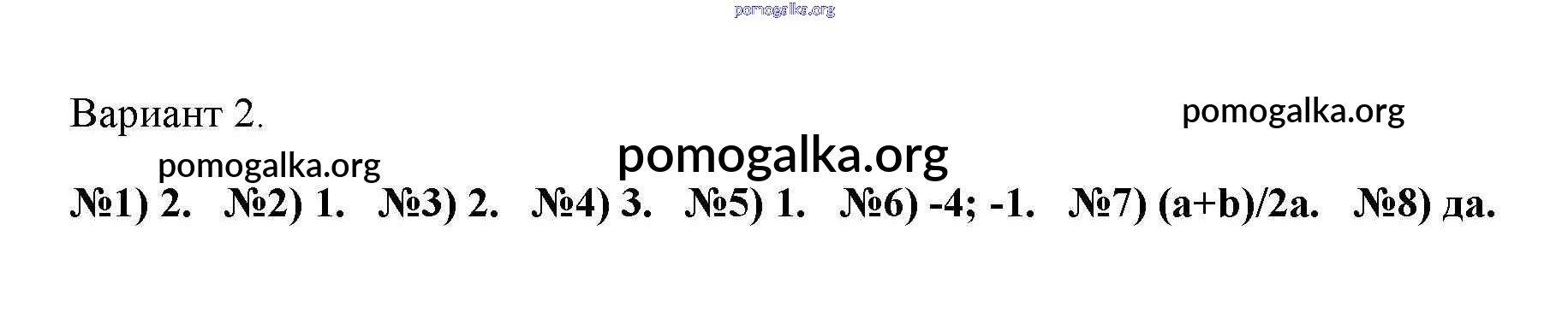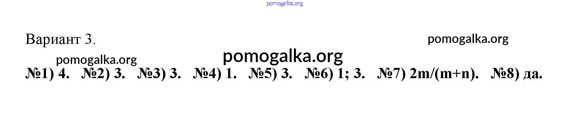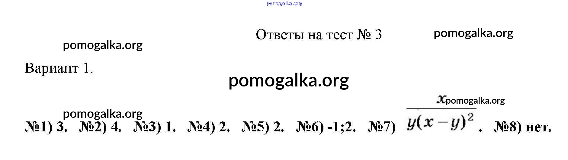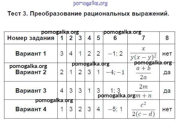 Готовые ответы - Алгебра 8 класс тематические тесты Дудницын Ю.П. - тест 3