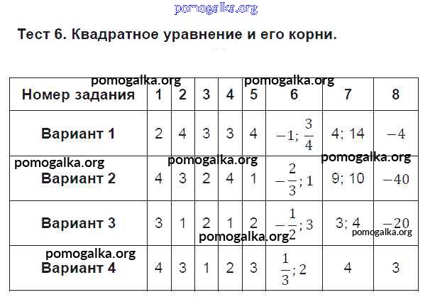 Готовые ответы - Алгебра 8 класс тематические тесты Дудницын Ю.П. - тест 6