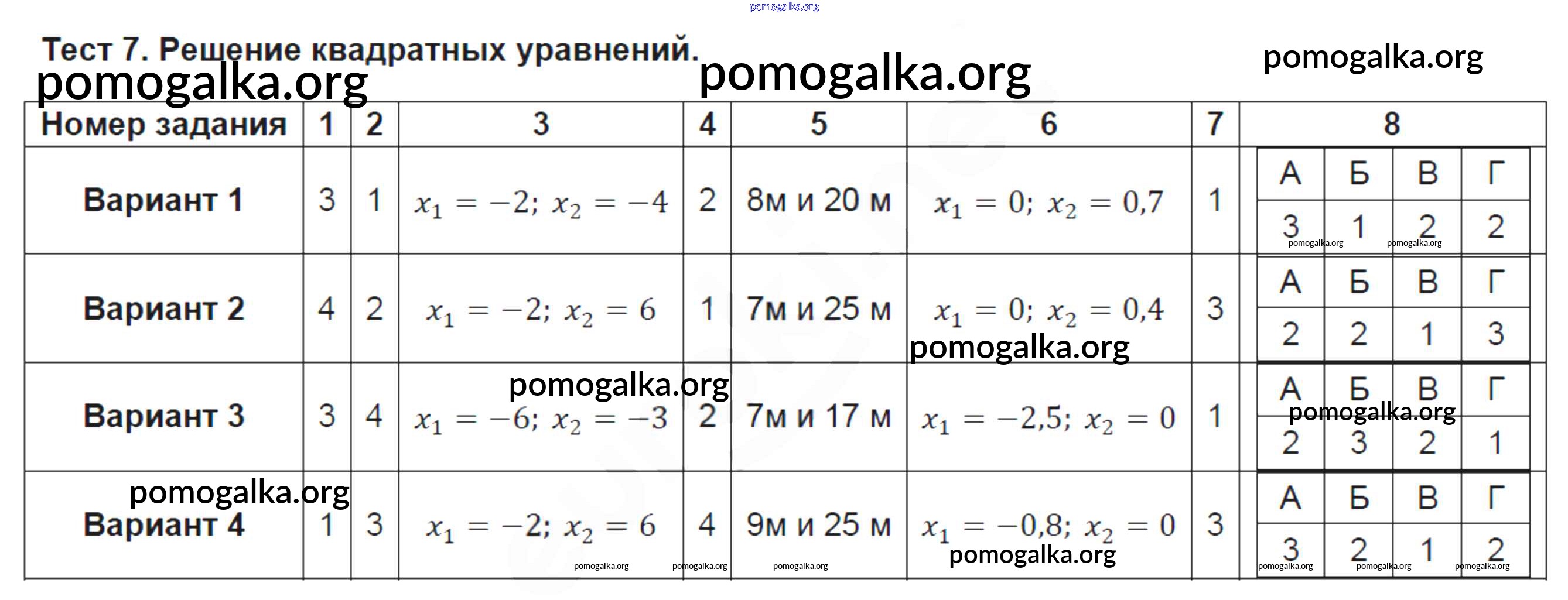 Готовые ответы - Алгебра 8 класс тематические тесты Кузнецова Л.В. - тест 7