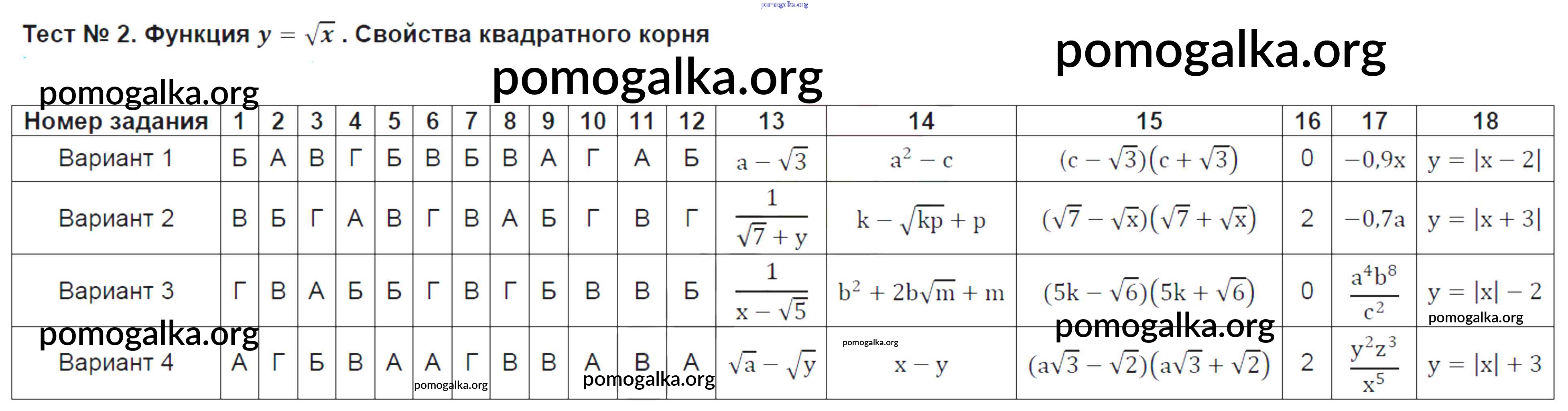 Готовые ответы - Алгебра 8 класс тесты Ключникова Е.М. (к уч. Мордковича) - тест 2