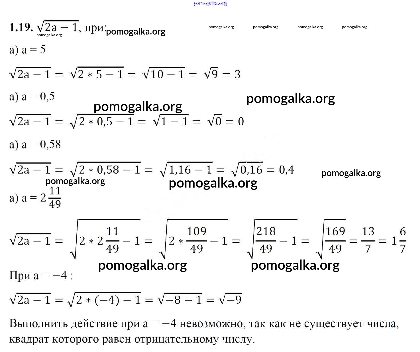 Готовые ответы - Алгебра 8 класс Арефьева И.Г. - упражнение глава 1 1.19