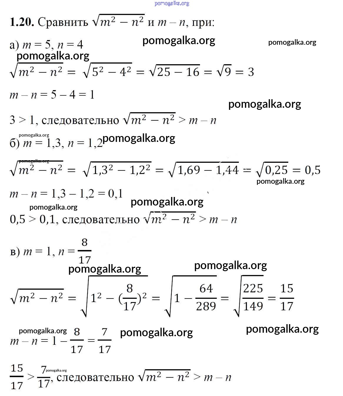 Готовые ответы - Алгебра 8 класс Арефьева И.Г. - упражнение глава 1 1.20